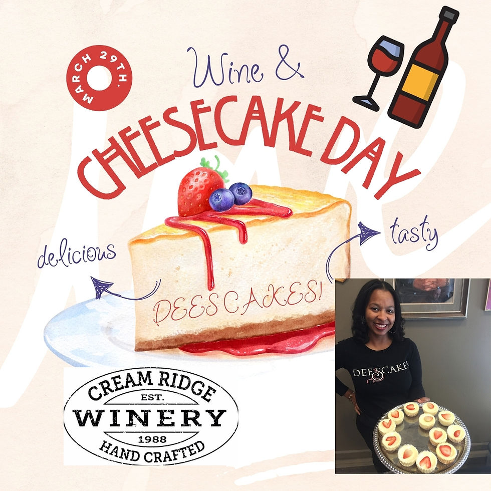 Cocoa Currant is BACK and better than ever as a fresh FarmsStand Sangria - (very limited supply)AND cheesecakes by DeesCakes! We will be pairing Cocoa Currant with our Cheesecake Day Free Cheesecake with Wine Tasting